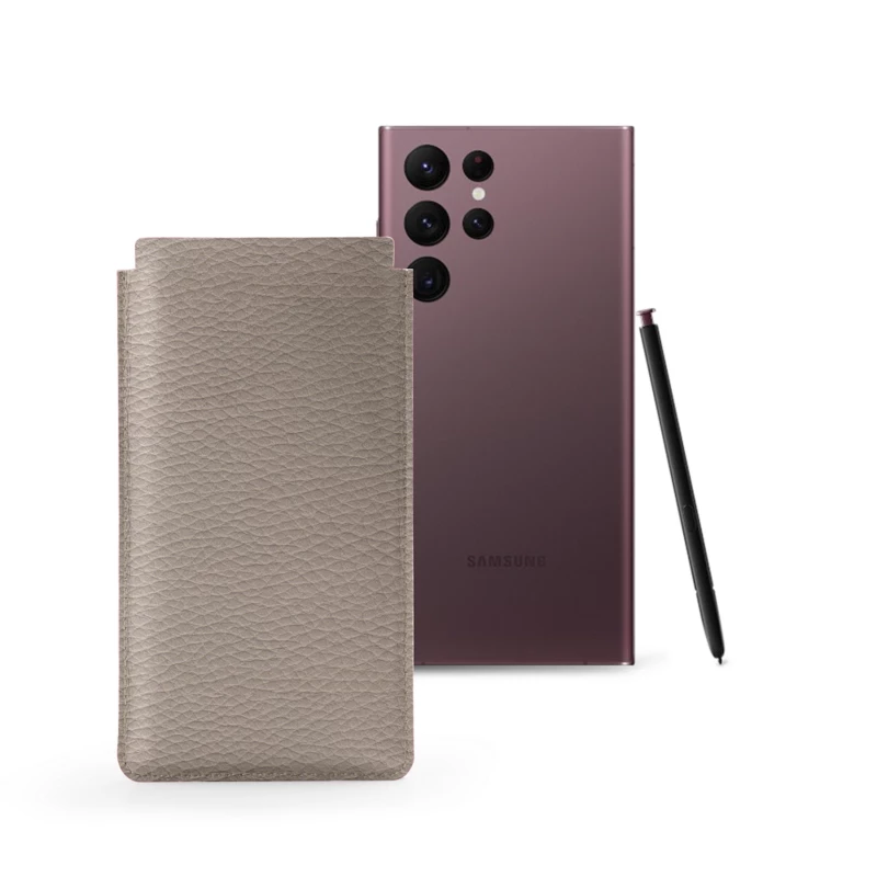For the extremely careful and style-conscious people, the classic sleeve pouch for Samsung S22 Ultra is the ideal accessory. This case will protect your brand new gadget from scrapes and scratches thanks to its strong construction, which includes a luxurious leather outside and a soft microfibre inside. This classic sleeve case can easily integrate your style aesthetic along with protecting your Samsung S22 Ultra from bumps and breakage. Choose from a variety of customisation options to make your own phone sleeve case.