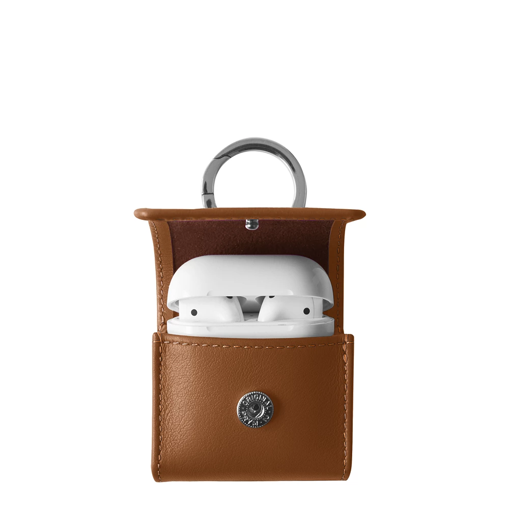 AirPods Case with Carabiner Clip Tan  - Smooth Leather