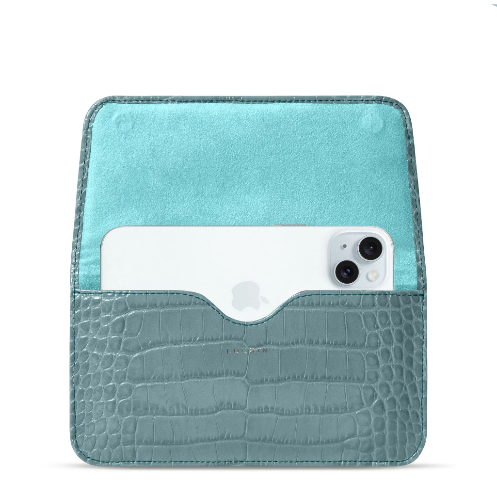 Belt Case for iPhone 15 Turquoise  - Crocodile Style Calfskin