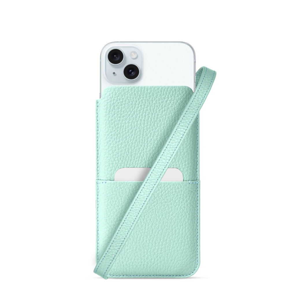 Lanyard Pouch - iPhone 15 Pastel Aqua  - Pebbled Leather