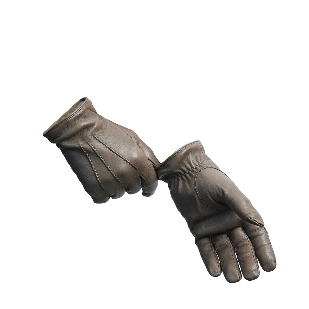 Gant d'hiver en cuir couleur taupe foncé d'une finission exemplaire.