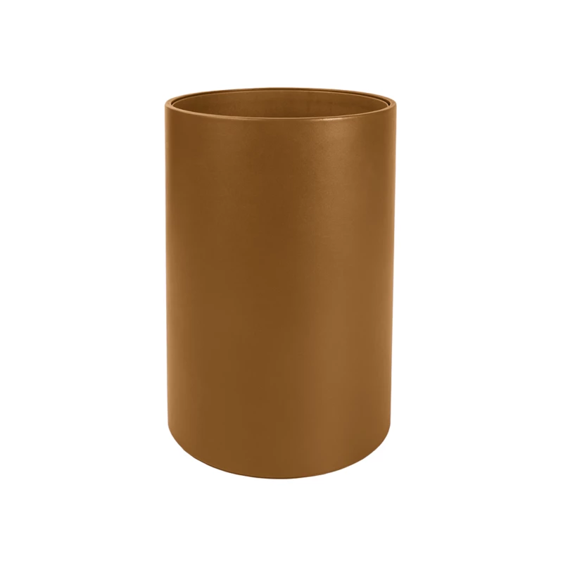 Whether at home or at the office, a waste basket is always pretty useful. Whatever be the room, placing this sumptuous leather paper bin at the foot of a table or desk definitely adds a touch of elegance to the décor. This small round leather waste basket is available in a wide selection of leather colours. It will therefore blend with any kind of decor - from contemporary to vintage.